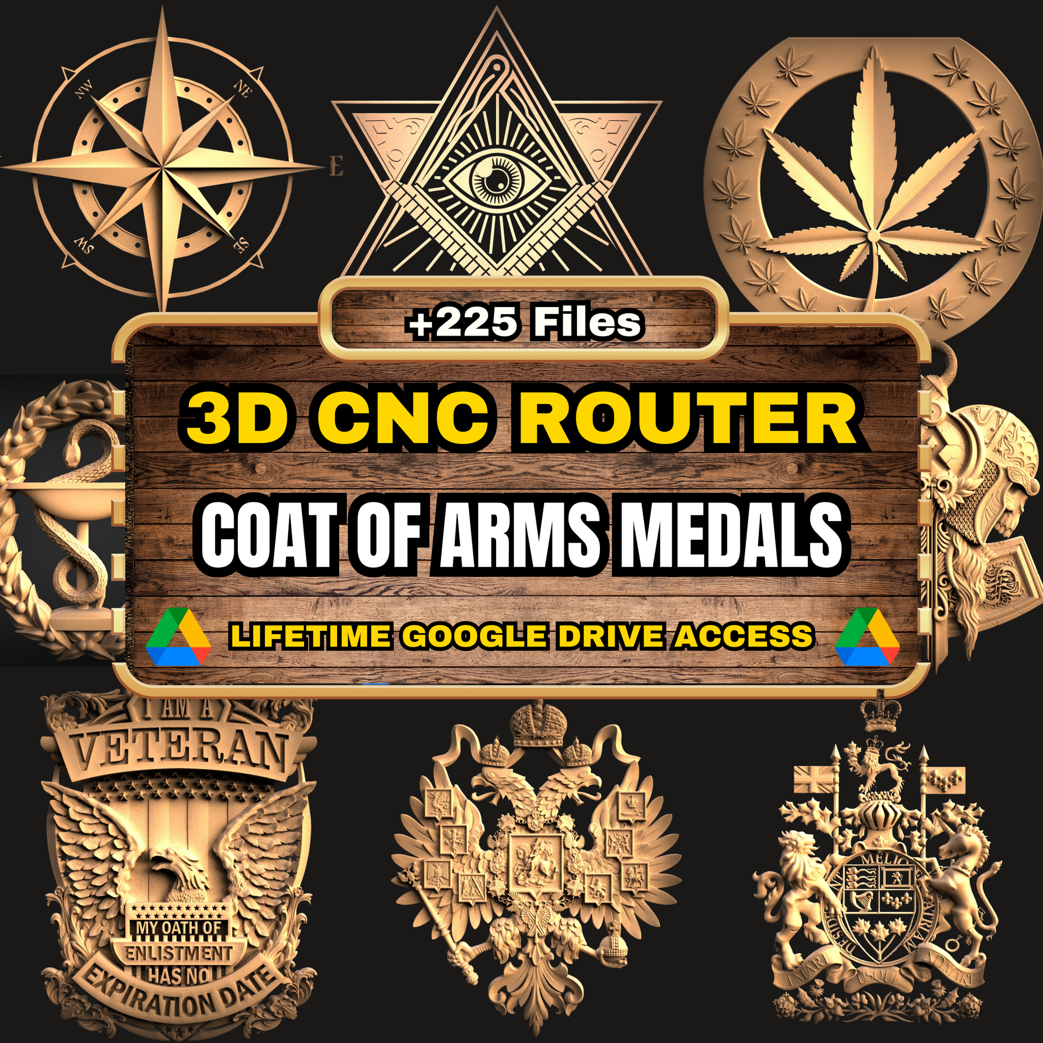 Coat Of Arms Medals 3D CNC Router STL Pack: +225 STL Files of Coat of Arms Medals For 3D Cnc Router Machine - Lifetime Google Drive Access