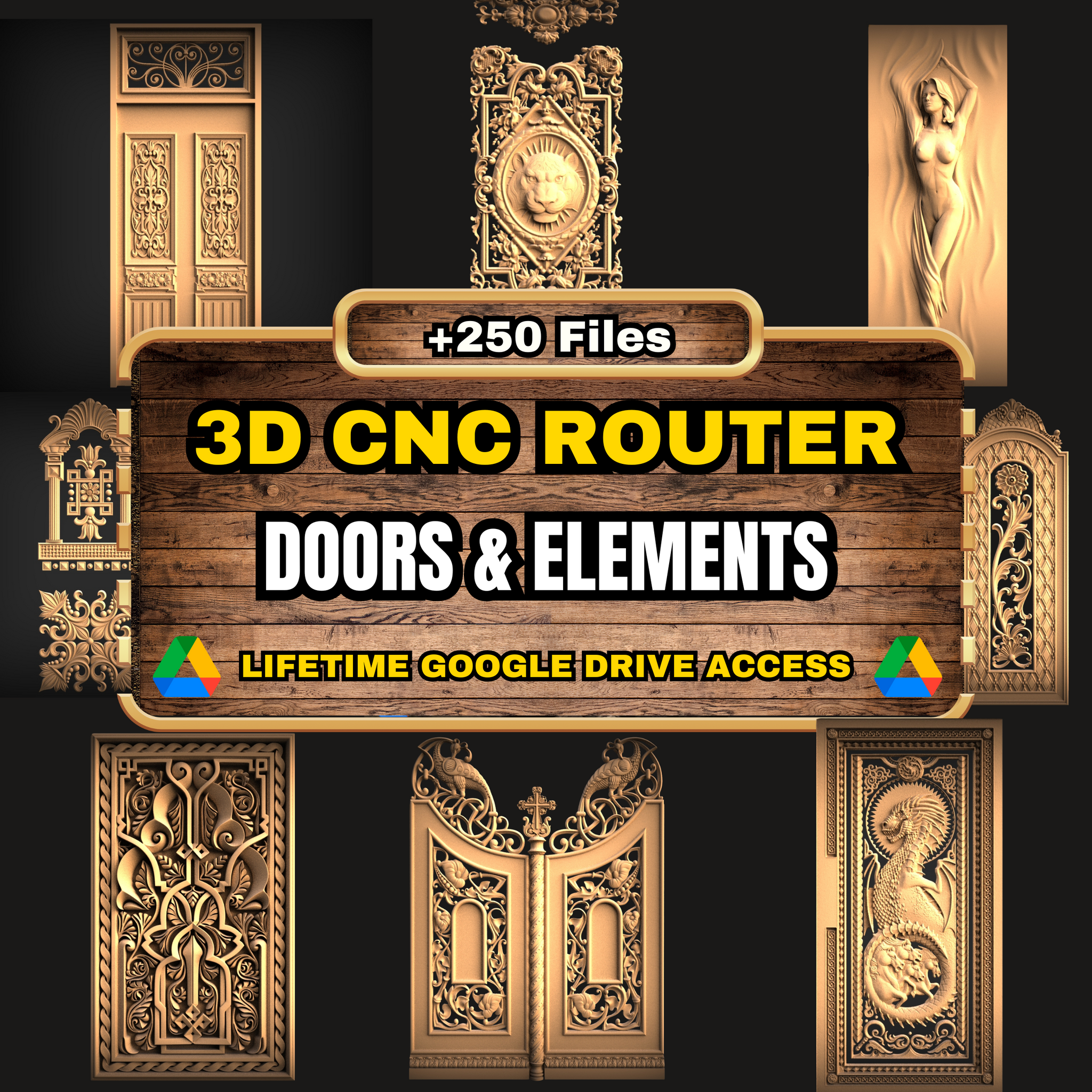 Doors & Elements 3D CNC Router STL Pack: +250 STL Files of Doors And Elements For 3D Cnc Router Machine - Lifetime Google Drive Access